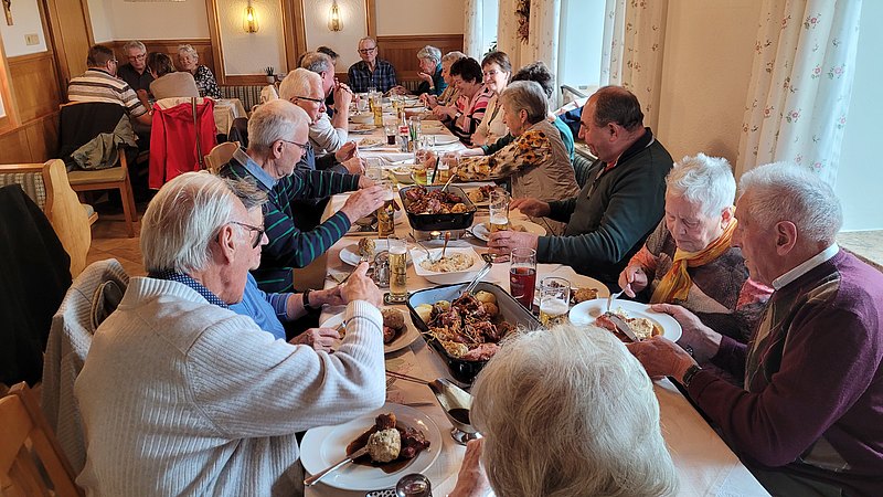 Im voll besetzten Nebenzimmer genossen wir die Surripperl mit reichlich Beilagen. Unser Obmann Alois Selker gab noch einen Überblick über die nächsten Veranstaltungen des Seniorenbundes. (Sind auch immer auf der Homepage ersichtlich) Gute Unterhaltung kam auch nicht zu kurz!Im voll besetzten Nebenzimmer genossen wir die Surripperl mit reichlich Beilagen. Unser Obmann Alois Selker gab noch einen Überblick über die nächsten Veranstaltungen des Seniorenbundes. (Sind auch immer auf der Homepage ersichtlich) Gute Unterhaltung kam auch nicht zu kurz!